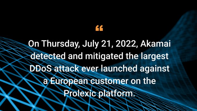 On Thursday, July 21, 2022, Akamai detected and mitigated the largest DDoS attack ever launched against a European customer on the Prolexic platform, with globally distributed attack traffic peaking at 853.7 Gbps and 659.6 Mpps over 14 hours. The attack, which targeted a swath of customer IP addresses, formed the largest global horizontal attack ever mitigated on the Prolexic platform.