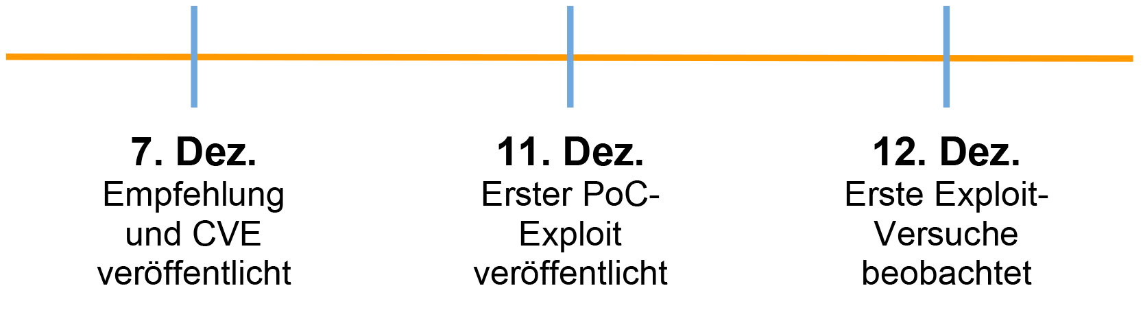 Am 11. Dezember wurden die ersten PoC-Exploits (Proof-of-Concept) veröffentlicht und allgemein zugänglich gemacht. Kurz darauf, am 12. Dezember, folgten Exploit-Versuche (Abbildung 1).